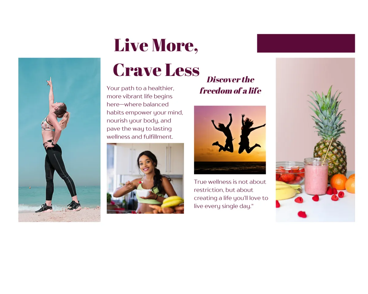 Many struggle to find a sustainable balance that truly nurtures both mind and body. That's why my Live More, Crave Less: Transform Your Life masterclass is crafted just for you! Imagine starting each day feeling invigorated and empowered, with a clear understanding of how to nourish your mind and body in unison. This transformation is within your reach, beginning with creating habits that align with your desired future.